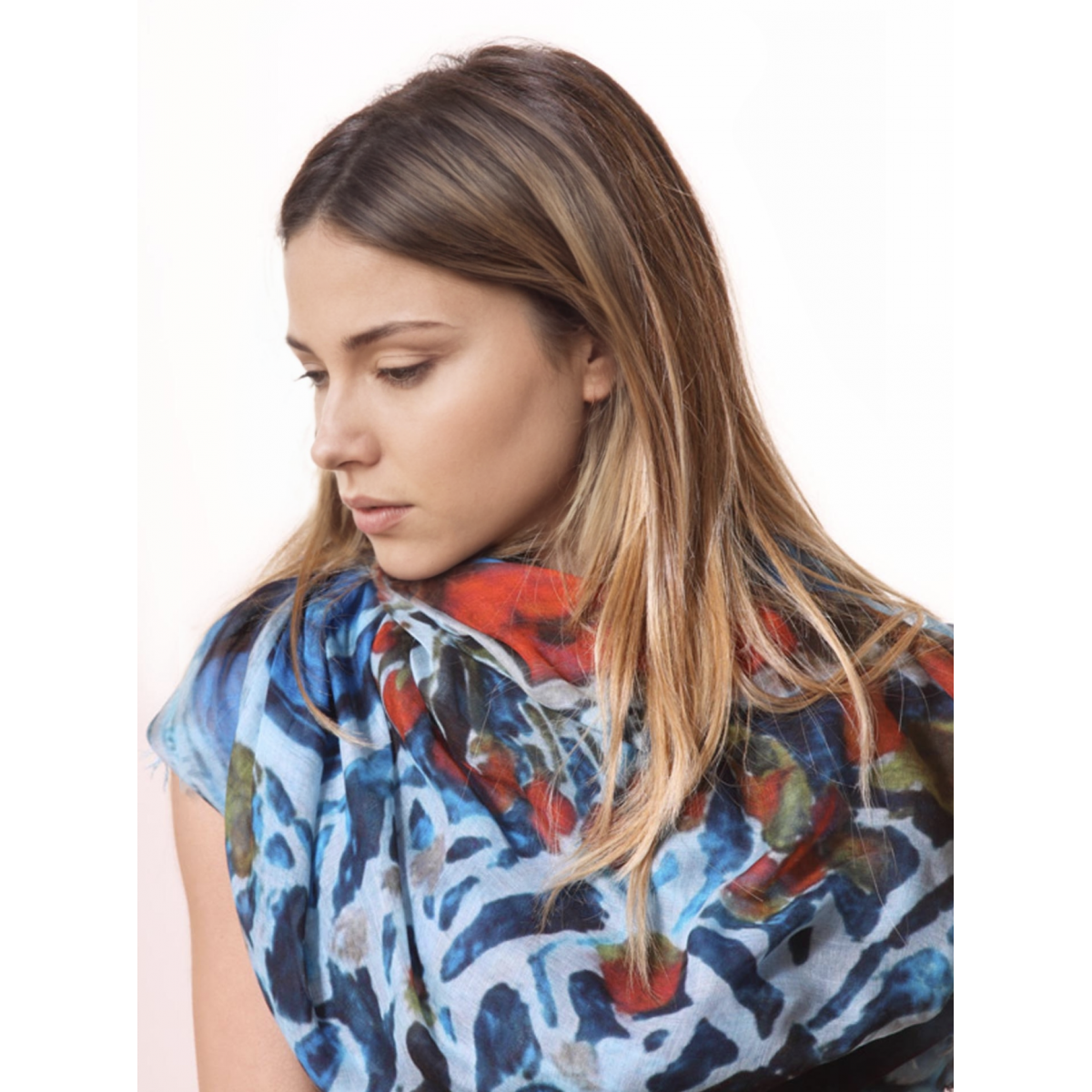 Sciarpa d'arte, riproduzione dell'opera pittorica "Iris" di Eugenia Papa, olio sul tela, 2008.